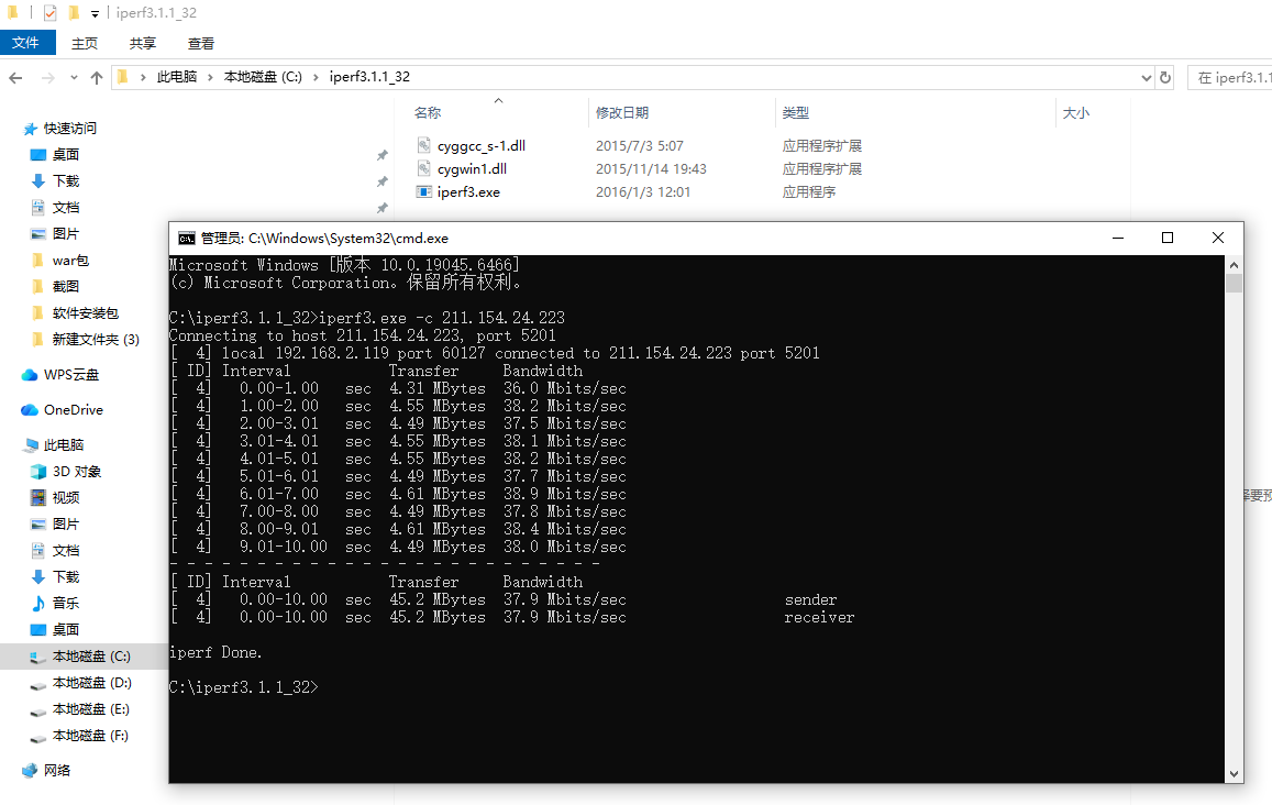 C:\iperf3),确保解压后能找到 iperf3.exe 可执行文件。