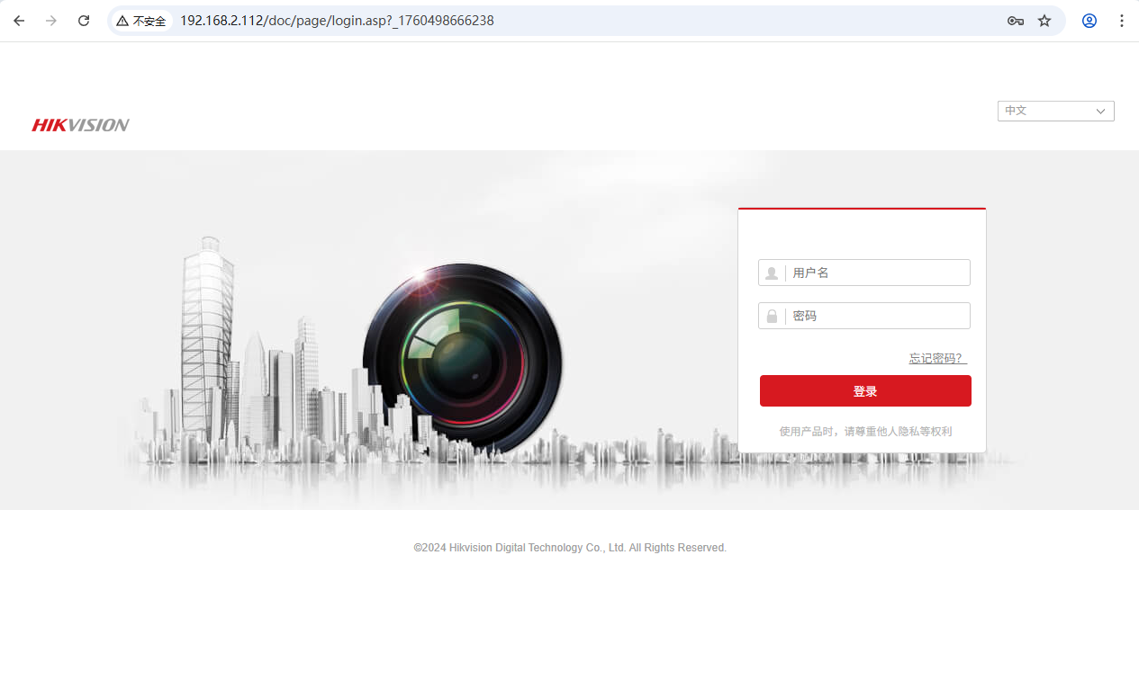 登录海康录像机的web管理控制台,如果不知道录像机的IP地址,可以使用海康的设备搜索工具查找,查找到录像机的IP后,通过浏览器打开,如下图所示:
