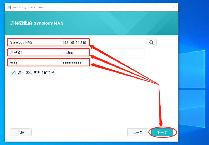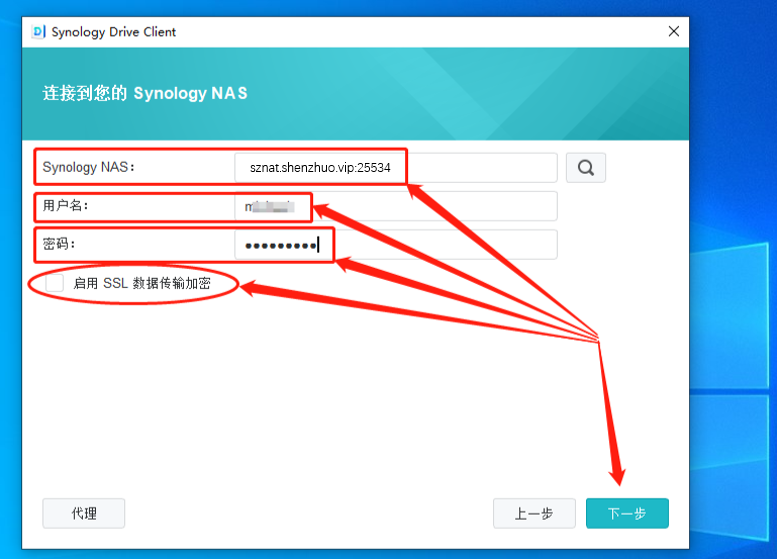 与本地局域网访问Synology Drive一样,我们需要在Synology Drive Client客户端输入需要连接的Synology NAS的基本信息。所不同的是,