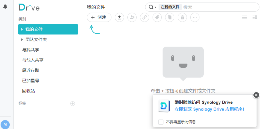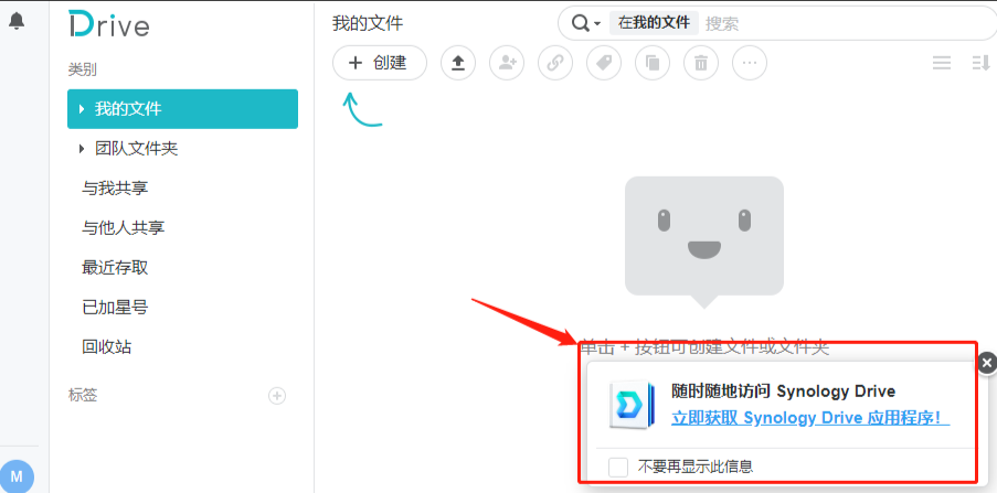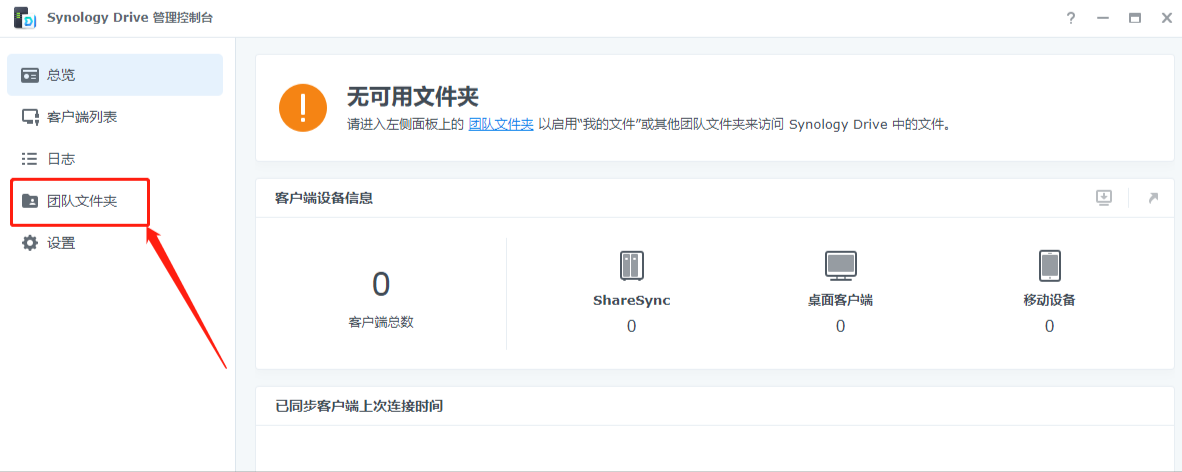 Synology Drive套件安装完成后,就可以在群晖主菜单中找到Synology Drive的套件图标。由于Synology Drive套件并不会自动开启文档共享功能,因此我们需要对其