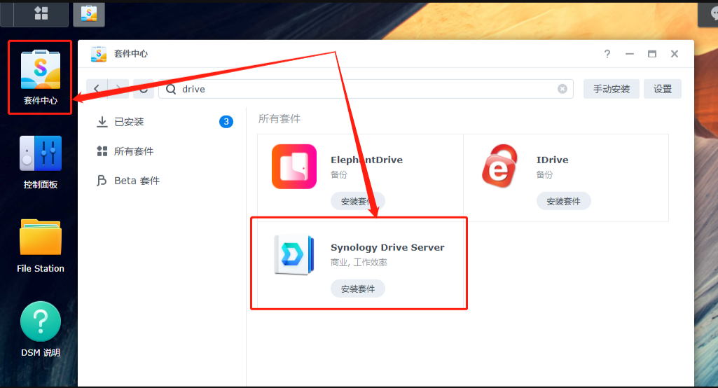 1.安装Synology Drive套件